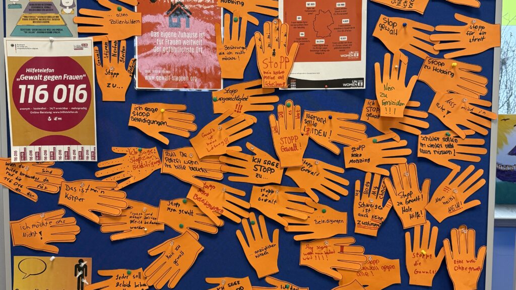 Am 25. November setzten die Schüler_innen der Gertrud – Koch Gesamschule Sieglar ein deutliches Zeichen im Rahmen der internationalen Kampagne „Orange the World…