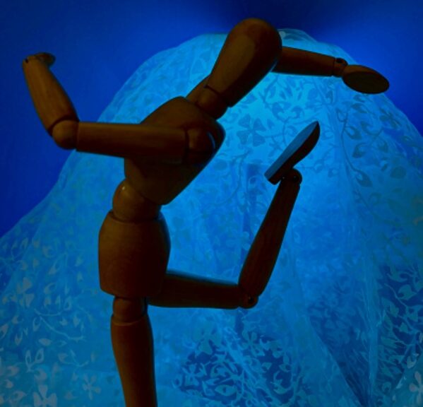 „Das blaue Licht stellt die Kälte eines schmelzenden Eisbergs da. Die Holzfigur zeigt, dass die Menschen trotz schmelzenden Eisbergen und Gletschern ihr Leben…
