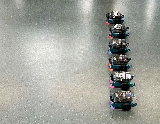 Am ersten Tag bekamen wir eine Einführung in das Thema der Robotik. Dabei lernten wir, was Roboter sind, wo sie ein gesetzt werden und welche Vor- und Nachteile sie haben. Anschließend arbeiteten wir in Zweiergruppen und programmierten mit dem Block-based-coding auf einem kleinen Gerät (calliope mini 3) eine Lärmampel und ein Lichtwecker. Danach programmierten wir kleine Roboter mit Rädern (MBot2). Zuerst folgten wir einer Anleitung, später durften wir die Roboter frei programmieren, so dass es aussah als ob sie Breakdance tanzten.