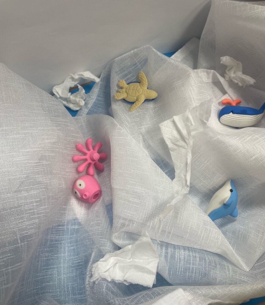Die Schülerinnen und Schüler beantworteten für sich in Gruppenarbeiten die Fragen:  Welche Gefühle löst die Klimakrise bei uns aus? Wie können wir das Thema kreativ in einer inszenierten Fotografie umsetzen? Was macht eine gute Fotografie aus? Gegenstände wurden arrangiert und fotografiert. Bildausschnitt, Hintergrund, Licht und Tiefenschärfe wurden berücksichtigt.  Zu den Fotografien entstanden Texte, mit denen die jeweiligen Bilder kommentiert wurden.