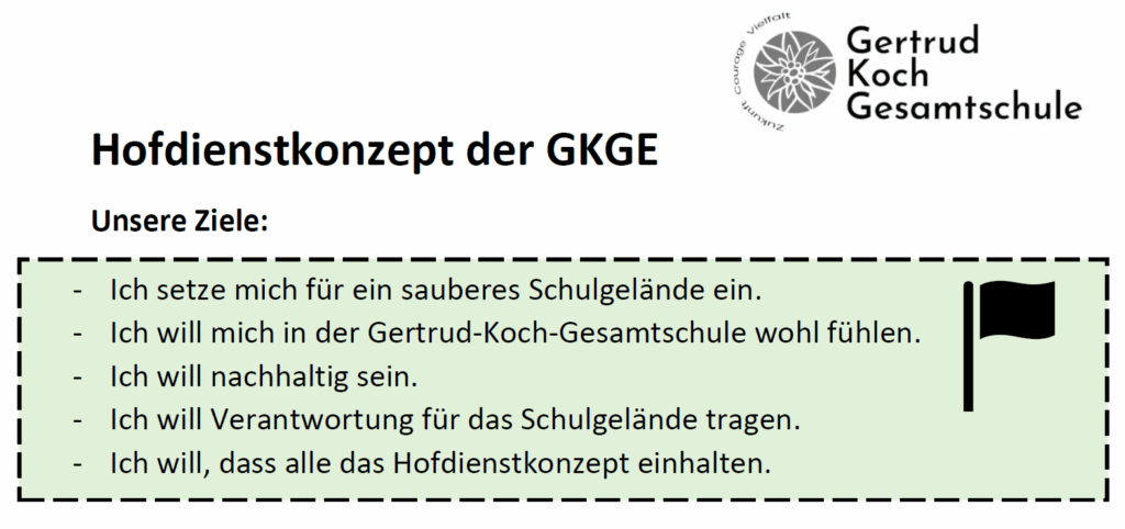 Ein sauberes Schulgelände ist uns wichtig – als Zeichen von Respekt, Verantwortung und gelebter Nachhaltigkeit. Der Arbeitskreis „Schule der Zukunft und Nachhaltigkeit“ hat dafür ein Sauberkeits- und Hofdienstkonzept entwickelt, das seit mehreren Jahren fester Bestandteil unseres Schulalltags ist.