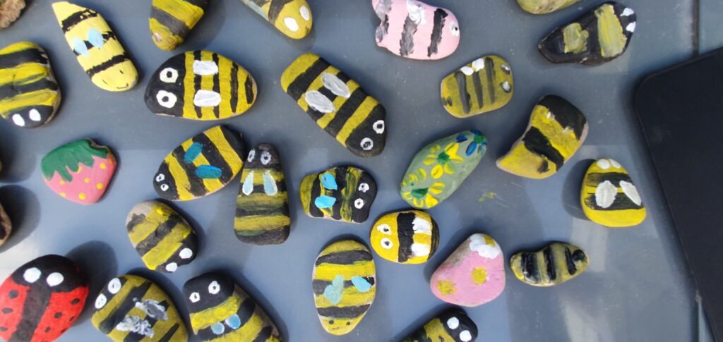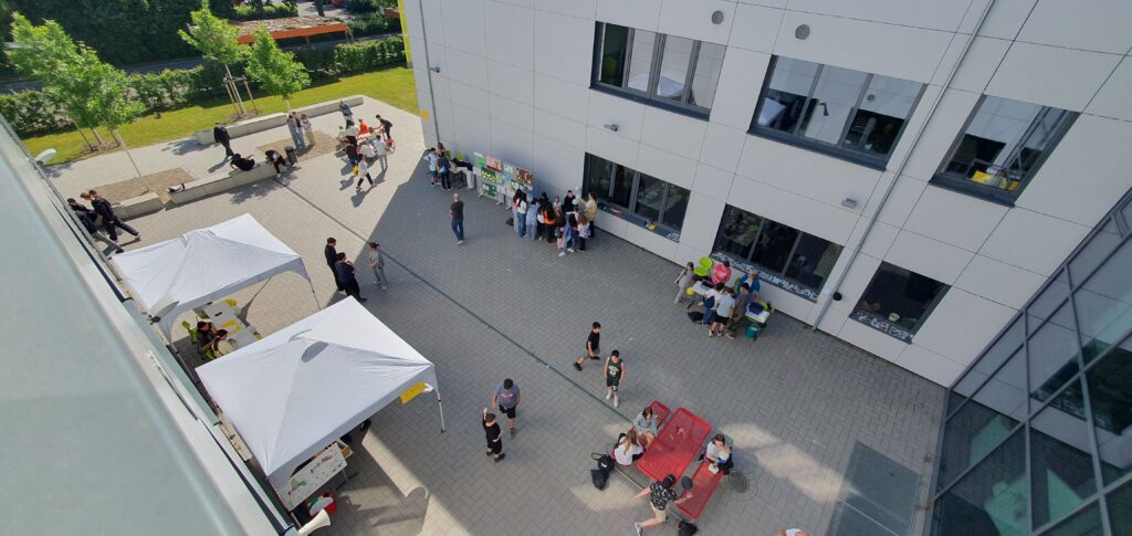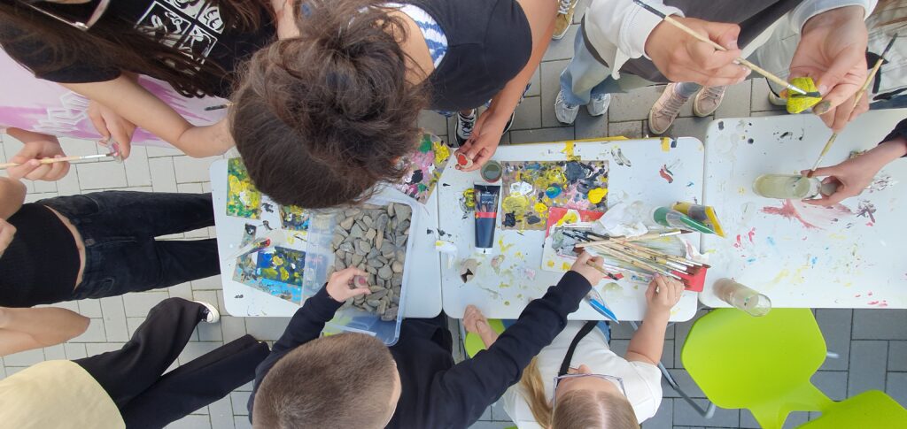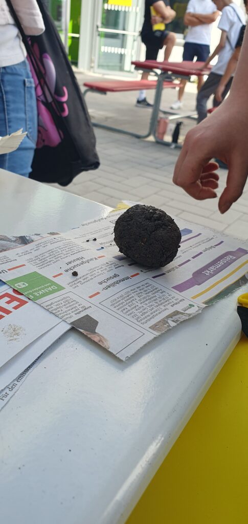 Auf dem Pausenhof konnten die Schüler:innen an verschiedenen Stationen aktiv werden – vom Bienen-Quiz über das Bemalen von Steinen bis hin zum Basteln von Samenkugeln für eine bienenfreundliche Umwelt. Ein Imker gab spannende Einblicke in das Leben im Bienenstock und beantwortete viele neugierige Fragen.